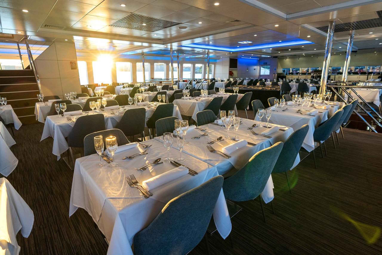 - Profitiert von reservierten Tischen und Kellnerservice auf einem klimatisierten Schiff.